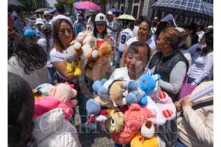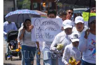 TOLUCA, ESTADO DE MÉXICO, 10AGOSTO2025.- Con muñecos de peluche y pancartas pacientes con cáncer, familiares e integrantes de diversas asociaciones marcharon este domingo en la ciudad de Toluca uniéndose a la Marcha Nacional ¡Queremos Medicina! convocada por la asociación Nariz Roja, buscando visibilizar el desabasto de medicamentos que existe en nuestro país para pacientes con cáncer, sobre todo para los de escasos recursos. FOTO: CRISANTA ESPINOSA AGUILAR/CUARTOSCURO.COM