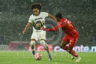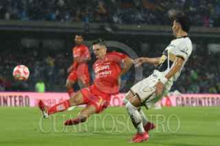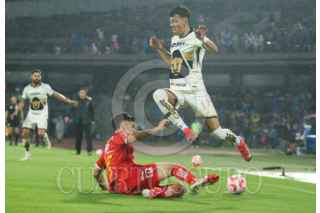 CIUDAD DE MÉXICO, 10AGOSTO2025.- Diego de Buen, mediocampista de Necaxa celebró un gol anotado en el partido contra los Pumas en el Estadio Olímpico Universitario. FOTO: GRACIELA LÓPEZ/CUARTOSCURO.COM
