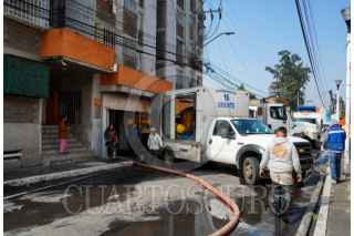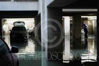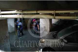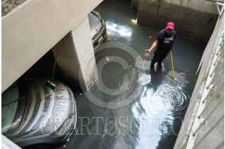 CIUDAD DE MÉXICO, 11AGOSTO2025.- Trabajadores de la alcaldía Iztacalco realizan trabajos de desazolve en la unidad Agua Caliente de la colonia agrícola Pantitlán. El estacionamiento del complejo quedó inundado tras las intensas lluvias del día de ayer lo que dañó al menos 10 vehículos y cuatro motocicletas según reportaron vecinos. FOTO: GALO CAÑAS/CUARTOSCURO.COM