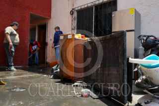 CIUDAD DE MÉXICO, 11AGOSTO2025.- Vecinos de la unidad habitacional agua caliente 3 en la Colonia Agrícola Pantitlán continúan sacando cosas de sus departamentos, que se inundaron tras las fuertes lluvias del día de ayer. FOTO: GALO CAÑAS/CUARTOSCURO.COM