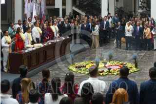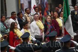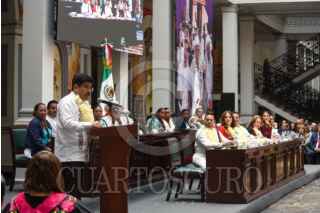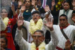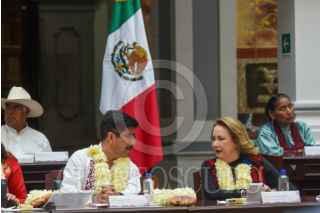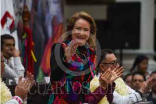 TOLUCA, ESTADO DE MÉXICO, 11AGOSTO2025.- Hugo Aguilar Ortiz Ministro Presidente electo de la SCJN y Norma Lucia Piña Hernández, Ministra Presidenta de la Suprema Corte de Justicia de la Nación durante la Primera Sesión Extraordinaria de la Sala de Asuntos Indígenas del Tribunal Superior de Justicia del Estado de México que se realizó en el Patio Constitución del Palacio del Poder Judicial del Edoméx. FOTO: CRISANTA ESPINOSA AGUILAR/CUARTOSCURO.COM