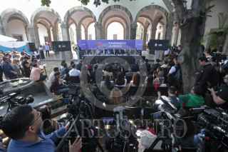 GUADALAJARA, JALISCO. 12AGOSTO2025.- Esta mañana se llevo a cabo una conferencia de prensa en el Museo Cabañas para dar a conocer que la Selección Mexicana jugara contra su similar de Ecuador en el Estadio Guadalajara, en uno de los partidos de preparación del conjunto nacional mexicano, dicho evento fue encabezado por Pablo Lemus Gobernador de Jalisco, Amaury Vergara Director General de Grupo Omnilife, Ivar Sisniega Campbell Presidente Ejecutivo de la FMF, Juan José Frangie Presidente Municipal de Zapopan y Dulio Davino Director Deportivo de la Selección Nacional Mayor Varonil, entre otros. FOTO: FERNANDO CARRANZA GARCIA / CUARTOSCURO.COM