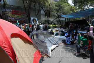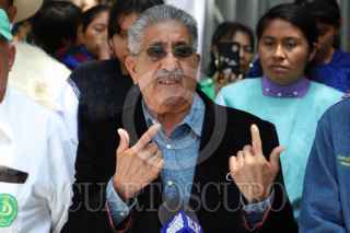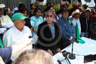 CIUDAD DE MÉXICO, 12AGOSTO2025.- Álvaro López Ríos, secretario general de la UNTA, durante la conferencia de prensa afuera de la SADER, donde realizarán un plantón por excluir a la organización de los proyectos de fertilización que promueve la secretaría. FOTO: DANIEL AUGUSTO/ CUARTOSCURO.COM