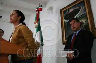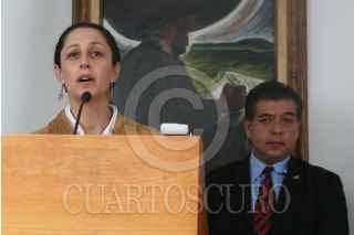 MÉXICO,D,F.,14 NOVIEMBRE2007.- Claudia Sheinbaun secretaria de patrimonio nacional, Mario Di Constanzo Secretario de Hacienda del gobierno legítimo en conferencia de prensa en donde habló sobre la irrupción de perredistas a la catedral ademas de tratar temas como la venta del petróleo. FOTO: SASHENKA GUTIERREZ/CUARTOSCURO.COM