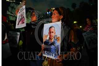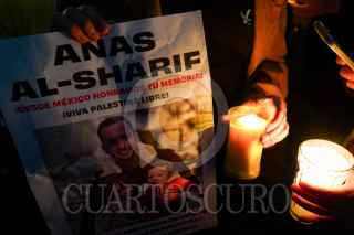 CIUDAD DE MÉXICO, 12AGOSTO2025.- Periodistas, activistas y personas de la sociedad civil se reunieron en el Ángel de la Independencia para exigir justicia por los periodistas palestinos asesinados en Gaza tras un ataque dirigido contra su casa de campaña por parte de Israel. Entre poemas, veladoras y las fotos de los comunicadores: Anas al-Sharif; Mohammed Qreiqeh, Ibrahim Zaher, Moamen Aliwa, Mohammed Noufal y Mohammad al-Khaldi llamaron al gobierno mexicano a romper relaciones con el primer ministro Benjamín Netanyahu. FOTO: GALO CAÑAS/CUARTOSCURO.COM