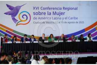 CIUDAD DE MÉXICO, 13AGOSTO2025.- Aspectos de la instalación de la XVI Conferencia Regional Sobre la Mujer de América Latina y el Caribe que se desarrolla en el Centro Cultural Universitario de Tlatelolco para generar espacios de discusión y compromisos en América Latina en virtud del sistema de cuidados. FOTO: GALO CAÑAS/CUARTOSCURO.COM