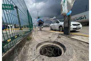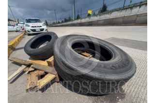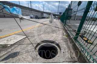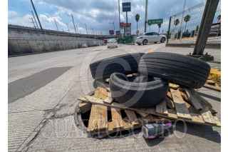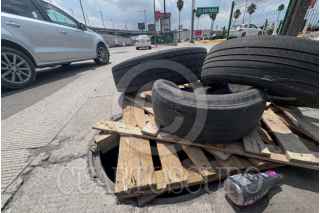 TOLUCA, ESTADO DE MÉXICO, 13AGOSTO2025.- Llantas viejas, maderas y algunas cuerdas han sido colocadas en coladeras que no tienen tapa en Paseo Tollocan, muy cerca de Boulevard Aeropuerto, para evitar algún accidente a los vehículos que circulan por la zona o algún transeúnte. FOTO: CRISANTA ESPINOSA AGUILAR/CUARTOSCURO.COM