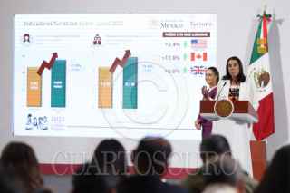 CIUDAD DE MÉXICO, 14AGOSTO2025.- La secretaria de Turismo, Josefina Rodríguez Zamora, presentó las cifras del aumento de turistas que visita el país durante el primer semestre del año. FOTO: DANIEL AUGUSTO/ CUARTOSCURO.COM