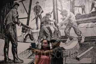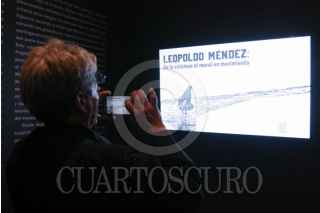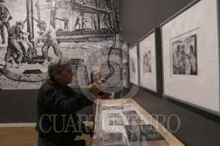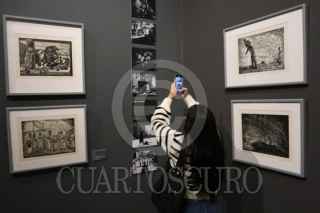 CIUDAD DE MÉXICO, 14AGOSTO2025.- Una joven toma fotografías durante el recorrido a medios de comunicación de la exposición "Leopoldo Méndez. De la estampa al mural en movimiento" en el Museo Nacional de la Estampa, la cual estará abierta al público a partir del 16 de agosto. FOTO: GRACIELA LÓPEZ/CUARTOSCURO.COM