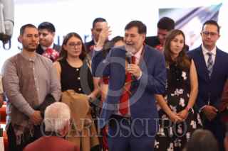 CIUDAD DE MÉXICO, 14AGOSTO2025.- Al término de la presentación de su informe de actividades como presidente de la Mesa Directiva del Senado, Gerardo Fernández Noroña se reunió con amigos y su familia para dialogar y tomarse fotografías. FOTO: DANIEL AUGUSTO/ CUARTOSCURO.COM