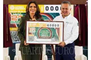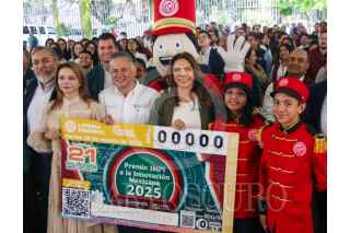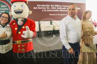 CIUDAD DE MÉXICO. 15AGOSTO2025.- La Lotería Nacional, encabezó la develación del billete de Sorteo Mayor 3984 correspondiente al Premio IMPI a la innovación mexicana 2025, asistieron Santiago Nieto y Olivia Salomón, en las oficinas IMPI. FOTO: VICTORIA VALTIERRA/CUARTOSCURO.COM