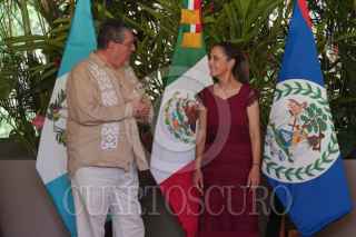 CALAKMUL, CAMPECHE, 15AGOSTO2025.- Claudia Sheinbaum, presidenta de México, durante el encuentro México-Belice-Guatemala en la que se firmó la Declaración de Calakmul: Corredor Biocultural Gran Selva Maya. FOTO: PRESIDENCIA/CUARTOSCURO.COM