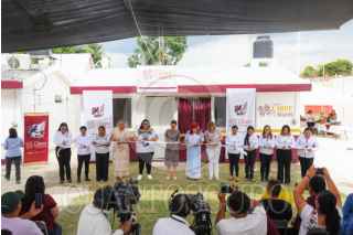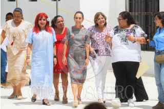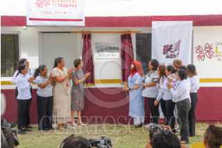 XPUJIL, CAMPECHE, 16AGOSTO2025.- Claudia Sheinbaum, presidenta México, acompañada por Layda Sansores, gobernadora de Campeche y Citlalli Hernández, secretaria de las Mujeres, inauguró el Centro Libre para las Mujeres en Xpujil, Calakmul. FOTO: MICHAEL BALAM/CUARTOSCURO.COM