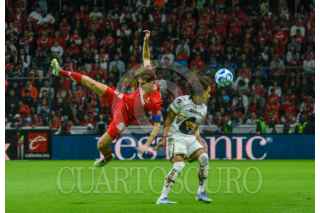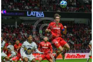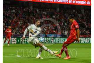 TOLUCA, ESTADO DE MÉXICO, 16AGOSTO2025.- José Caicedo, Pedro Vite y Santiago Trigos jugadores de Pumas festejan su anotación ante la escuadra de los Diablos de Toluca quienes se enfrentaron en la cancha del estadio Nemesio Diez, en el partido correspondiente a la jornada 5 del Torneo Apertura 2025 de la Liga MX, con un marcador final 1-1. FOTO: CRISANTA ESPINOSA AGUILAR/CUARTOSCURO.COM