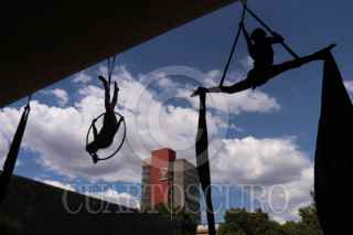 CIUDAD DE MÉXICO, 17AGOSTO2025.- Jóvenes practican danza aérea en Ciudad Universitaria. FOTO: GRACIELA LÓPEZ/CUARTOSCURO.COM