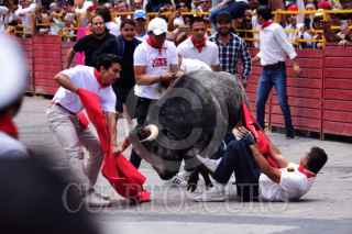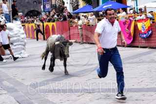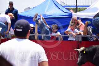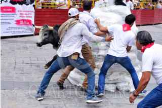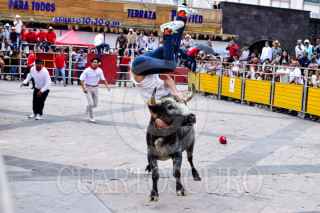 AGUASCALIENTES, AGUASCALIENTES, 17AGOSTO2025.- En el marco del regreso de la Feria de la Uva a Aguascalientes, el Gobierno del Estado organizó el Encierro San Marqueño, un corredor sobre el Andador J. Pani de ExpoPlaza que, buscando emular los festejos de San Fermín en Pamplona, dispuso novillos de lidia para que los asistentes hicieran el recorrido y novilleros realizaran algunas suertes taurinas. La actividad se da en medio del latente debate sobre la prohibición de las corridas de toros en algunas partes del país, donde Aguascalientes, desde el Congreso del Estado, las ha blindado a nivel constitucional aludiendo al respeto de las tradiciones y la derrama económico que representa para el estado. El próximo sábado 23 de agosto se llevará de nueva cuenta esta actividad. FOTO: CRISTIAN LIRA /CUARTOSCURO.COM