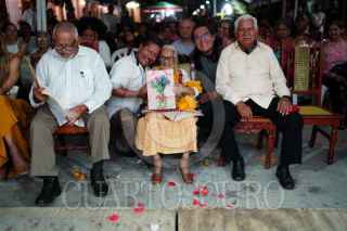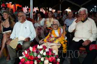 TLACOTLALPAN, VERACRUZ, 17AGOSTO2025.- La comunidad de Tlacotlalpan festejó los cien años de “Mamá Elena”, preservadora del zapateado y el son jarocho, la veracruzana, quien también es costurera del traje de jarocha. Ha desarrollado una labor de amplio impacto en la enseñanza de las danzas tradicionales al influir en diversas generaciones, incluidos sus hijos, nietos y bisnietos, quienes han desarrollado carreras en compañías representativas como el Ballet Folklórico de la Universidad Veracruzana y el Ballet Folklórico de México. En 1974 fue una de las fundadoras de la Casa de la Cultura Agustín Lara en Tlacotalpan, donde ejerció como profesora de zapateado tradicional. FOTO: JUAN JOSÉ ESTRADA SERAFÍN/CUARTOSCURO.COM