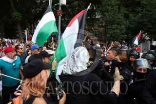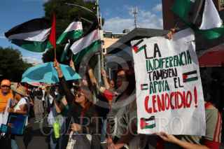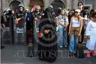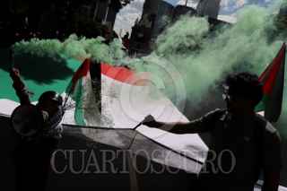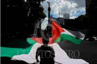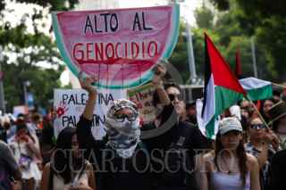 CIUDAD DE MÉXICO, 17AGOSTO2025.- Los manifestantes pro Palestina exigen un alto al fuego y que el gobierno mexicano rompa relaciones con el estado de Israel ante los actos que comente en la Franja de Gaza. FOTO: DANIEL AUGUSTO/ CUARTOSCURO.COM