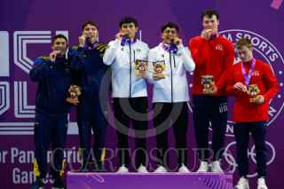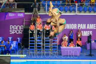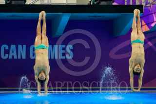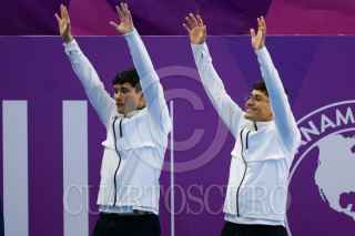 ASUNCIÓN, PARAGUAY, 17AGOSTO2025.- David Vazquez y Jesus Abundes de Mexico fueron ganadores de la medalla de Oro en trampolín de 3m sincronizados masculino durante los II Juegos Panamericanos Junior ASU 2025 en el Centro Acuatico Olímpico. FOTO: CÉSAR GÓMEZ/CUARTOSCURO.COM