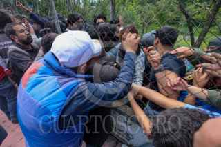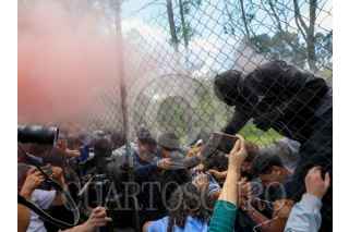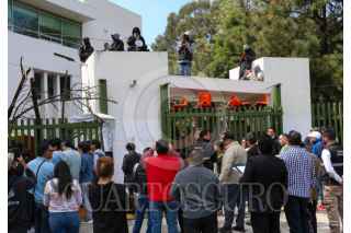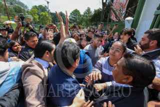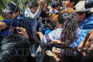 TOLUCA, ESTADO DE MÉXICO, 18AGOSTO2025.- Estudiantes de la Facultad de Ciencias Política de la UAEMÉX que piden regresar a clases de manera presencial, lograron entrar a la facultad en CU por una reja, tuvieron momentos tensos con estudiantes paristas que se encuentran al interior de las instalaciones; autoridades de la Universidad Autónoma del Estado de México intervinieron para poder sostener un diálogo entre ambas partes. FOTO: CRISANTA ESPINOSA AGUILAR/CUARTOSCURO.COM