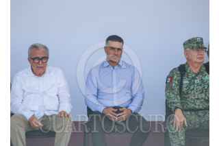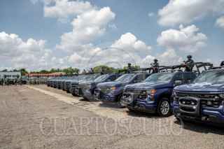 CULIACÁN, SINALOA, 18AGOSTO2025.- Rubén Rocha Moya, gobernador de Sinaloa, Omar García Harfuch, secretario de Seguridad y Protección Ciudadana y Ricardo Trevilla Trejo, secretario de la Defensa Nacional, encabezaron el acto celebrado en la Base Aérea Militar de Culiacán, el Gobierno del Estado de Sinaloa recibió 100 nuevas patrullas como parte de una estrategia federal para reforzar la seguridad en la entidad. FOTO: JOSÉ BETANZOS ZÁRATE/CUARTOSCURO.COM