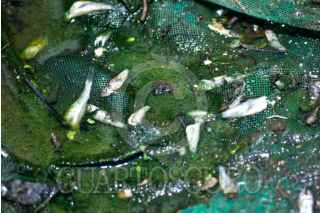 ACAPULCO, GUERRERO, 18AGOSTO2025.- Pescadores del embarcadero del Plan de los Amates, ubicado en la ribera de laguna de Tres Palos, denunciaron la muerte de toneladas de pescado desde hace una semana. Alertaron un fuerte olor amoniaco en las aguas de la laguna y comentaron que esto podría ser derivado a los trabajos de desazolve del río de La Sabana el cual desemboca en este cuerpo de agua. Informan que son más de 70 pescadores de esta comunidad los cuales se encuentran afectados y que perdieron todo la producción de peces que habían cultivado en los criaderos, entre los que destacan: robarlos, cuatetes, tilapias, charales y malacapa. Autoridades comentaron que realizaron un recorrido por la laguna e informaron que fueron las altas temperaturas que llegan hasta 34 grados en el agua lo que ha provocado la muerte de los animales por la falta de oxígeno. Sin embargo, la comunidad de pescadores exige una investigación a profundidad ya que han perdido toda su producción con la que mantienen a sus familias. FOTO: CARLOS CARBAJAL/CUARTOSCURO.COM
