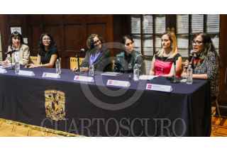CIUDAD DE MÉXICO. 19AGOSTO2025.- Conferencia de la XXI Muestra Internacional de Mujeres en el Cine y la Televisión y se realizó en la casa Universitaria del Libro de la UNAM. Orianna Paz y Marcela Duana, en el evento. FOTO: VICTORIA VALTIERRA/CUARTOSCURO.COM