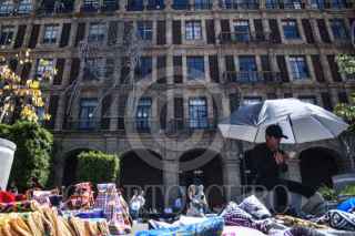 CIUDAD DE MÉXICO, 19AGOSTO2025.- Alumbrados alusivos a las fiestas patrias fueron colocados en los principales edificios que rodean la plancha del zócalo. FOTO: MARIO JASSO/CUARTOSCURO.COM
