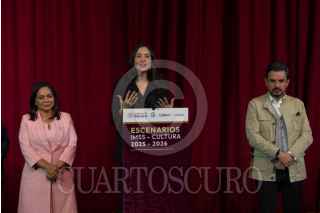 CIUDAD DE MÉXICO 19AGOSTO2025.- Zoé Robledo, titular del Instituto Mexicano del Seguro Social y Claudia Curiel, titular de la secretaria de cultura, encabezaron la presentación de la función Inaugural "La Obra de Bottom" la cual marca el arranque del programa Escenarios IMSS-Cultura 2025-2026. FOTO:ROGELIO MORALES /CUARTOSCURO.COM