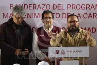 CIUDAD DE MÉXICO, 19AGOSTO2025.- Raúl Basulto, titular de la Secretaria de Obras de la CDMX, durante su participación en el banderazo de salida del Programa Integral de Mantenimiento de la Carpeta Asfáltica, realizado en Eje 3, canal de Apatlaco. FOTO: GRACIELA LÓPEZ/CUARTOSCURO.COM