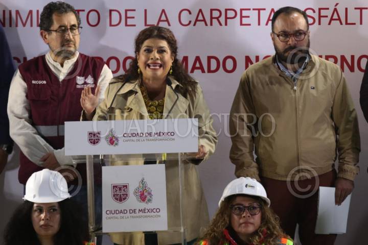 CIUDAD DE MÉXICO, 19AGOSTO2025.- Clara Brugada, jefa de Gobierno, encabezó el banderazo de salida del Programa Integral de Mantenimiento de la Carpeta Asfáltica, realizado en Eje 3, canal de Apatlaco. FOTO: GRACIELA LÓPEZ/CUARTOSCURO.COM