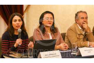 CIUDAD DE MÉXICO. 20AGOSTO2025.- Javier Zuñiga, Katia García, Alejandro Calvillo y Ana Larragaña, en la conferencia de prensa de la organización Poder del Consumidor, hablaron sobre las demandas a empresas por etiquetado a productos chatarra y bebidas azucarados. FOTO: VICTORIA VALTIERRA/CUARTOSCURO.COM