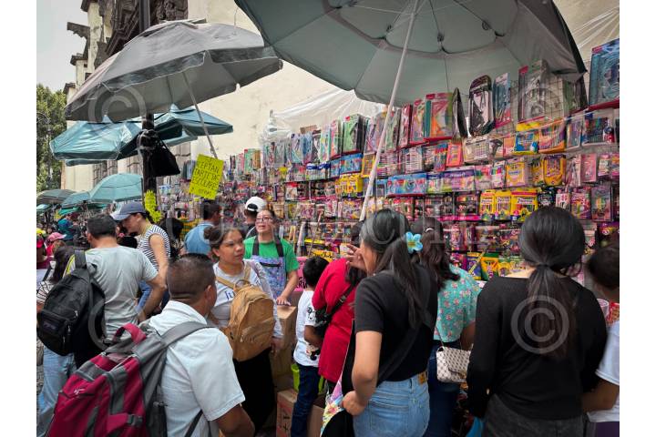 CIUDAD DE MÉXICO, 20AGOSTO2025.- Cientos de personas acuden a la calle Mesones y alrededores con el fin de surtir su lista de útiles escolares ante el regreso a clases del ciclo escolar 2025- 2025. FOTO: ANDREA MURCIA /CUARTOSCURO.COM