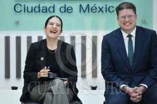 CIUDAD DE MÉXICO, 20AGOSTO2025.- Omar García Harfuch, secretario de Seguridad y Protección Ciudadana, durante conferencia de prensa en la que se ofrecieron detalles sobre la detención de las trece personas implicadas en el asesinato de Ximena y José, colaboradores de Clara Brugada, jefa de Gobierno. FOTO: MARIO JASSO/CUARTOSCURO.COM