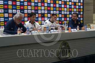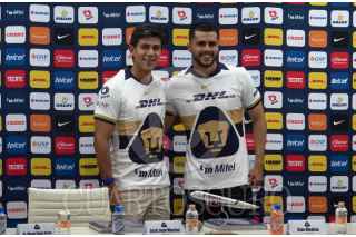 CIUDAD DE MÉXICO 20AGOSTO2025.- Se llevó a cabo la presentación de José Juan Macías y Alan Medina, como nuevos refuerzos para lo Pumas de la UNAM en la Cantera del equipo auriazul. FOTO:ROGELIO MORALES /CUARTOSCURO.COM