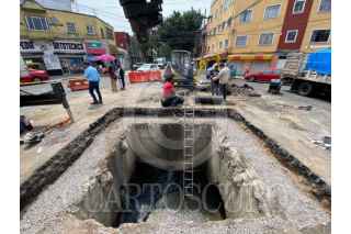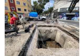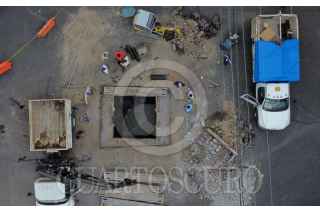 CIUDAD DE MÉXICO 20AGOSTO2025.- Imágenes aéreas de los los trabajos de reparación de un enorme socavón que se formó luego del paso de un camión de carga pesada en la calle Alfredo Chavero y su cruce con 5 de mayo en la Colonia Obrera de la alcaldía Cuauhtémoc. FOTO:ROGELIO MORALES /CUARTOSCURO.COM
