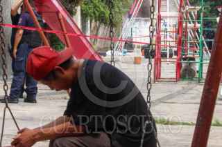 TLALNEPANTLA, ESTADO DE MÉXICO, 21AGOSTO2025.- Cuatro sujetos disfrazados de repartidores de comida rápida, supuestamente responsables del crimen, mataron a balazos al instructor de un parque de calistenia, ubicado en el corredor Cristo Rey, en la colonia San Andrés Atenco. Los presuntos agresores abandonaron las mochilas de repartidor que cargaban al darse a la fuga. FOTO: ROGELIO MORALES / CUARTOSCURO.COM