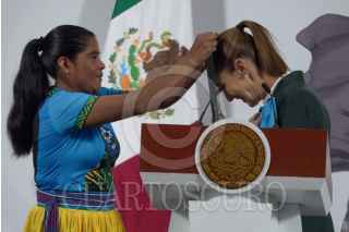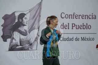 CIUDAD DE MÉXICO 22AGOSTO2025.- Claudia Sheinbaum Pardo, presidenta de México, durante la Conferencia del Pueblo, en donde se dieron los pormenores del programa "México Imparable" en cuál promueve el deporte en pueblos indígenas FOTO:ROGELIO MORALES /CUARTOSCURO.COM