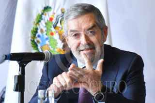CIUDAD DE MÉXICO, 22AGOSTO2025.- Juan Ramón de la Fuente, secretario de Relaciones Exteriores, durante conferencia de prensa en la que se presentaron avances en las acciones de protección para personas mexicanas en Estados Unidos. En el último reporte del programa migratorio que va del 1 de octubre de 2024 al 20 de agosto de 2025, en la frontera México-EU se presentó una reducción del 91 por ciento en el número de encuentros de personas en situación irregular al pasar de 3 mil 640 encuentros a 285. FOTO: MARIO JASSO/CUARTOSCURO.COM