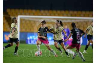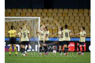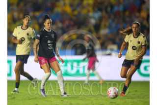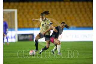SAN NICOLÁS DE LOS GARZA, NUEVO LEÓN, 22AGOSTO2025.- Jeniffer Hermoso de Tigres femenil, se disputa el balón con Clara Serrajordi del FC Barcelona femenil, en el estadio Universitario, durante el encuentro amistoso de las Estrellas de la Liga Mx Femenil. Barcelona Femenil derrota a las locales en penales 4-3, después de haber empatado el partido 2-2 dentro del tiempo regular.FOTO: CUARTOSCURO.COM