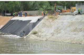 TULA DE ALLENDE, HIDALGO. 23AGOSTO2025.- El gobierno de México colocó tapetes articulados en un tramo de dos kilómetros del río Tula, a la altura del fraccionamiento Chapultepec, uno de los afectados por la inundación de septiembre de 2021. Lo anterior, como parte de la nueva etapa de las labores en este caudal, está modalidad permite que la vegetación crezca entre los tapetes, dandole un aspecto más natural a las zonas de taludes rehabilitados, informó Jaime Vázquez Bracho Torres, comisionado federal para el saneamiento del río Tula. FOTO: FRANCISCO VILLEDA/CUARTOSCURO.COM