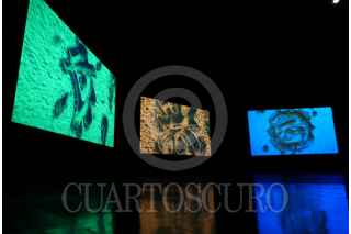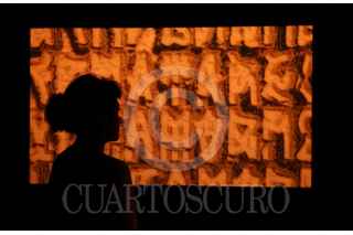 CIUDAD DE MÉXICO, 23AGOSTO2025.- Recorrido a medios de la instalación interactiva "De Tripas Corazón" en el marco de la exposición "Inscripciones". La obra habla de la escritura hacia los sistemas internos del cuerpo humano, biotecnología, neurociencias, visualización, sonificación y arte generativo. FOTO: GALO CAÑAS/CUARTOSCURO.COM