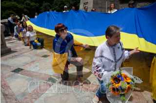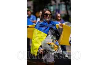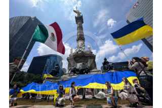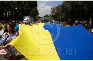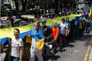 CIUDAD DE MÉXICO, 24AGOSTO2025.- En el marco del día de Independencia de Ucrania, ucranianos que viven en México realizaron una caminata pacífica en Reforma llegando al Ángel de la independencia donde ofrecieron un pequeño mitin. FOTO: ANDREA MURCIA /CUARTOSCURO.COM