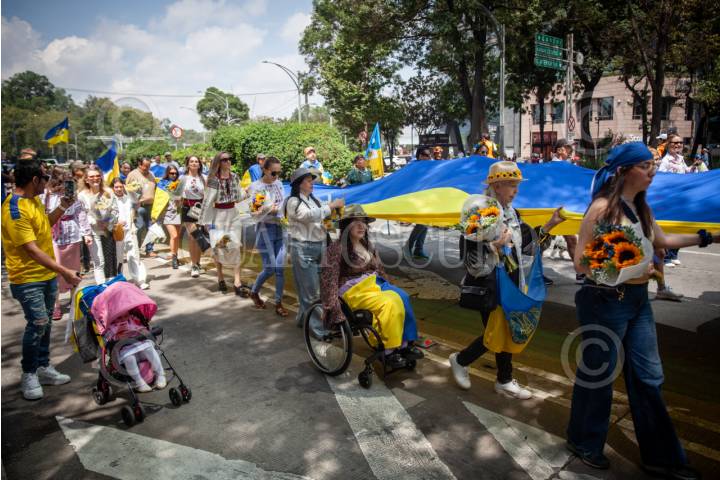 CIUDAD DE MÉXICO, 24AGOSTO2025.- En el marco del día de Independencia de Ucrania, ucranianos que viven en México realizaron una caminata pacífica en Reforma llegando al Ángel de la independencia donde ofrecieron un pequeño mitin. FOTO: ANDREA MURCIA /CUARTOSCURO.COM