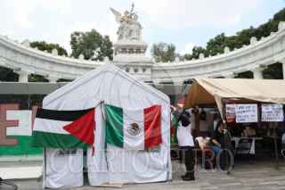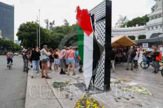 CIUDAD DE MÉXICO, 24AGOSTO2025.- Activistas pro Palestina realizaron un baile en el Antimonumento “Palestina vencerá”, que fue colocado hace un par de semanas en la banqueta del Hemiciclo a Juárez, frente a la secretaría de Relaciones Exteriores, esto para exigir que el gobierno capitalino no retire esta estructura con el argumento de que el próximo domingo se realizará el Maratón Internacional de la Ciudad de México. Los ahí presentes exigieron al gobierno mexicano romper relaciones con el gobierno de Israel. FOTO: MOISÉS PABLO/CUARTOSCURO.COM