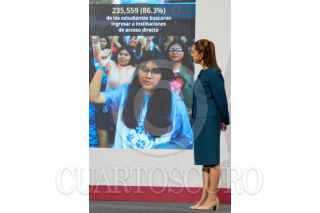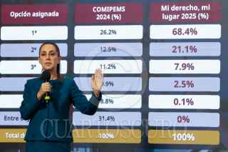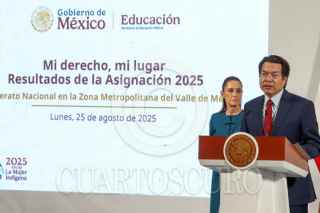 CIUDAD DE MÉXICO, 25AGOSTO2025.- Mario Delgado Carrillo, secretario de Educación Pública, presentó los resultados del programa "Mi derecho, mi lugar", con el cual casi el 60? los jóvenes que participaron obtuvieron su primera opción de escuela media superior. Esto ocurrió durante la Mañanera del Pueblo, encabezada por Claudia Sheinbaum Pardo, Presidenta de México. FOTO: MOISÉS PABLO / CUARTOSCURO.COM