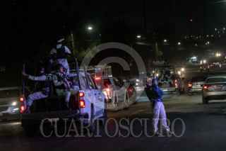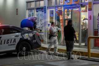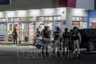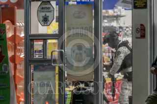 TIJUANA BAJA CALIFORNIA, 25AGOSTO2025.-Elementos de la Guardia Nacional a las afueras de la farmacia que habría sido asaltada. Un empleado de una Farmacia Roma ubicada en bulevar Pacífico, Sánchez Taboada, fue herido de bala tras un robo durante noche del domingo 24 de agosto. Cuatro personas, incluida una mujer, robaron cajas de cerveza y al ser confrontados por el trabajador, uno de ellos le disparó en la pierna. El joven de 28 años fue atendido por Cruz Roja y trasladado a un hospital. Los agresores huyeron hacia Camino Verde; no hubo detenidos. En la imagen, elementos de la Guardia Nacional vigilan la zona. FOTO OMAR MARTÍNEZ / CUARTOSCURO.COM