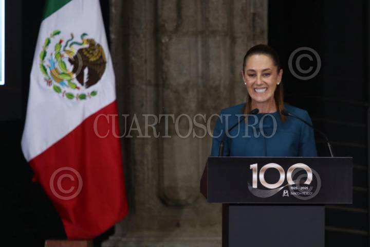 CIUDAD DE MÉXICO, 25AGOSTO2025.- Claudia Sheinbaum, presidenta de México, durante su participación en el evento conmemorativo de 100 Aniversario de la Fundación del Banco de México realizado en el Museo Interactivo de Economía FOTO: GRACIELA LÓPEZ/CUARTOSCURO.COM