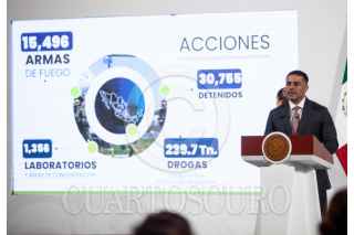 CIUDAD DE MÉXICO, 27AGOSTO2025.- Omar García Harfuch, secretario de Seguridad y Protección Ciudadana durante conferencia de prensa dedicada al tema de seguridad que se lleva a cabo en Palacio Nacional. FOTO: ANDREA MURCIA /CUARTOSCURO.COM