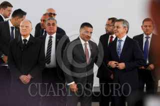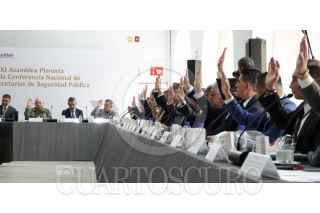 CIUDAD DE MÉXICO, 27AGOSTO2025.- Omar García Harfuch, Secretario de Seguridad Pública, junto con el Fiscal General Alejandro Gertz Manero, durante la XXXI Asamblea Plenaria de la Conferencia Nacional de Secretarías de Seguridad Pública. FOTO: GALO CAÑAS /CUARTOSCURO.COM